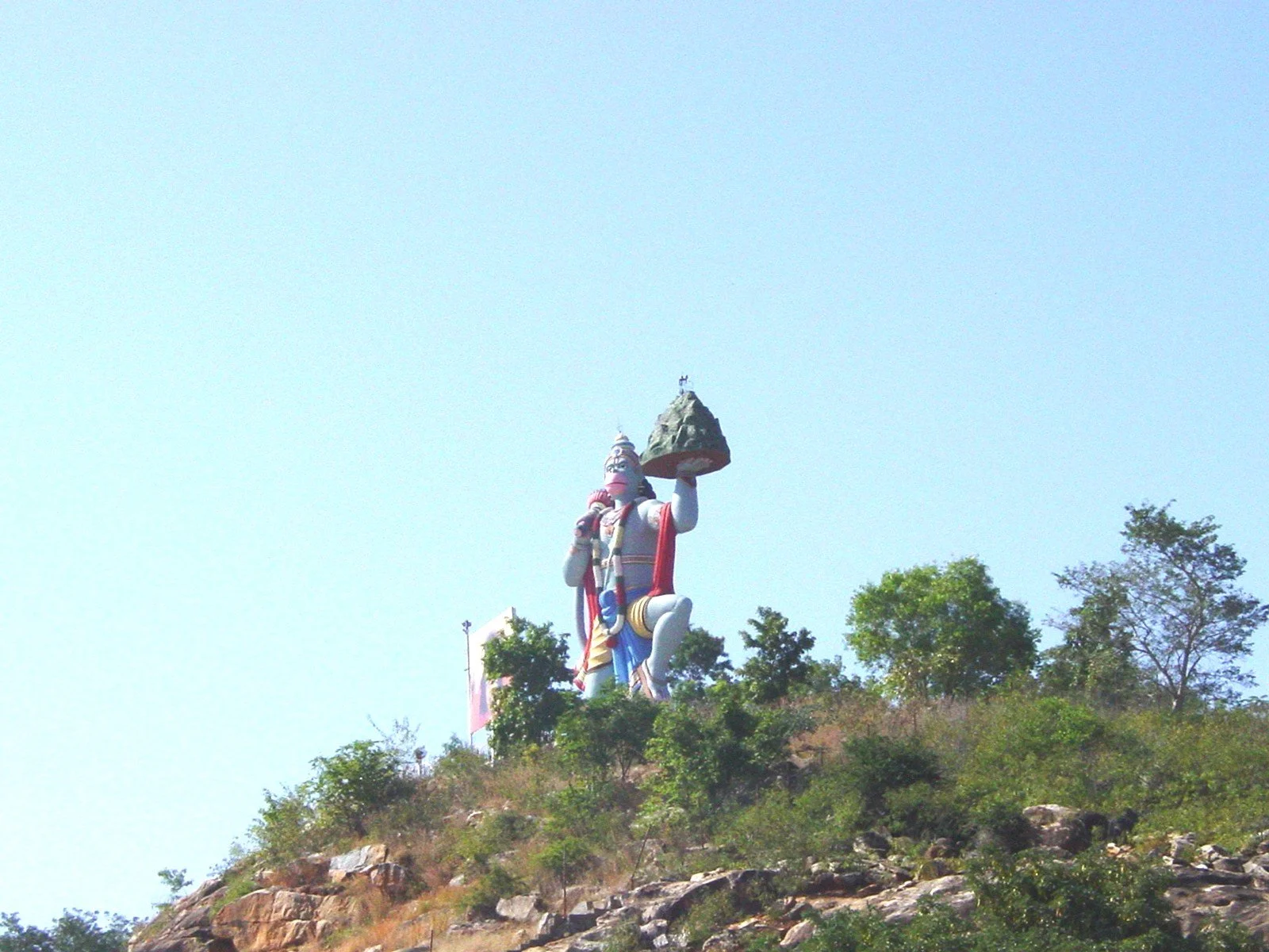 This arena hosts large events and sports meetings. High on the hill is a giant statue of Lord Hanuman.